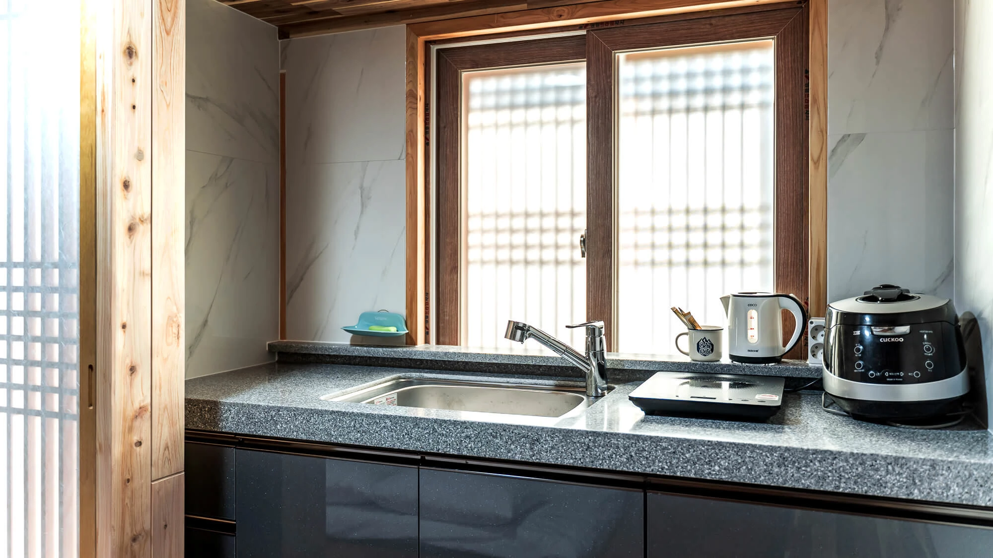 - 집기품목 : TV, 냉장고, 에어컨, 커피포트, 샴푸, 린스, 바디워시, 와이파이, 금연, 취사시설/도구, 전자레인지, 침대방, 욕실용품, VOD, 한옥